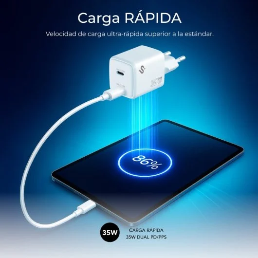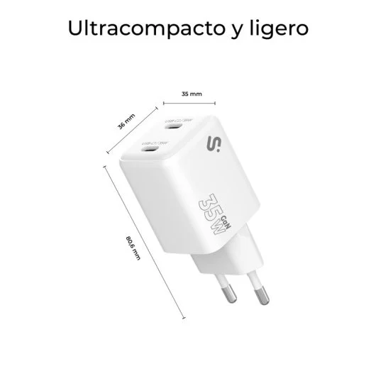Características Cargador GaN Subblim 35W 2x USB-C Power Delivery Compacto Blanco