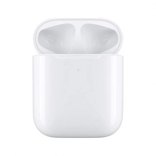 - El estuche se puede cargar sin cables mediante una base de carga compatible con la tecnología Qi o utilizando el conector Lightning