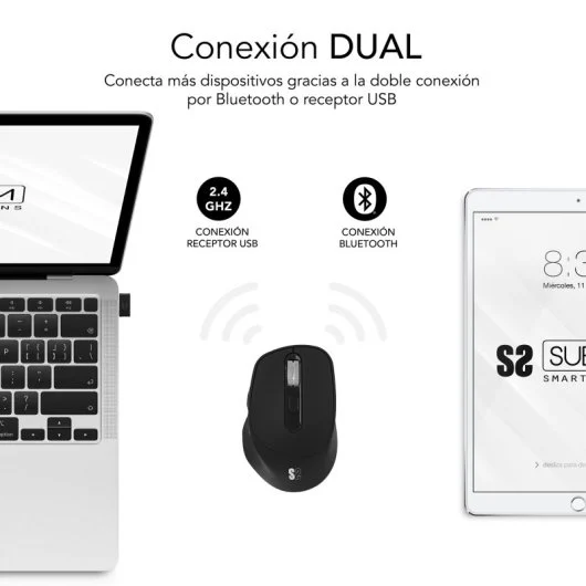 RatonesSubblim Comfort Ergo Dual Ratón Ergonómico Inalámbrico para Diestros 2400 DPI Negro
